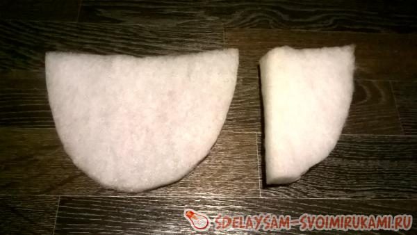 4. Из синтепона кроим 2 основные детали, 2 носка и 2 стопы.