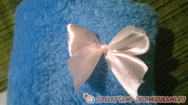 Осталось только сделать из ленты бантик и пришить его к изделию.