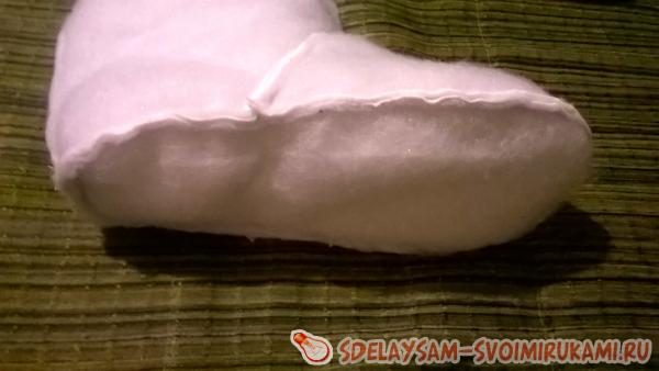 деталь стопы также кроится из белого флиса