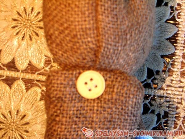 Создаем руки и ноги куклы. При помощи пуговиц формируем суставы. Крепим их к туловищу. Пришиваем голову.