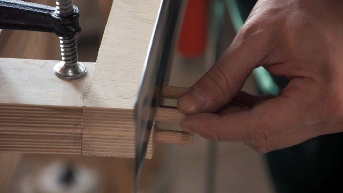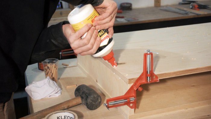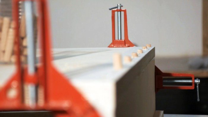 Верх столешницы я решил посадить на клей и нагели.