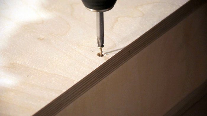 Напилил части ящиков из 12 мм фанеры и соединил на клей и саморезы.