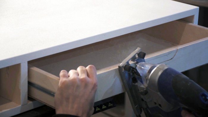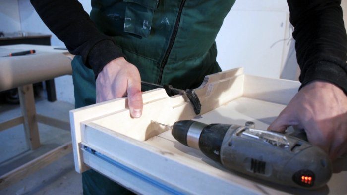 Для фасадов ящиков использовал 12 мм фанеру. Фасады внутренние так что их размер на 2 мм с каждой стороны меньше проема для ящиков.