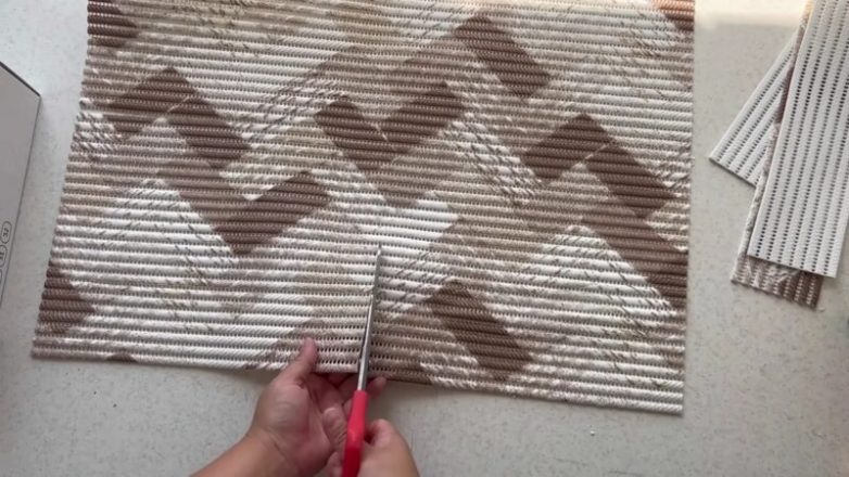 Далее приклейте коврик к боковой части коробки, в этом случае полосы должны располагаться горизонтально.