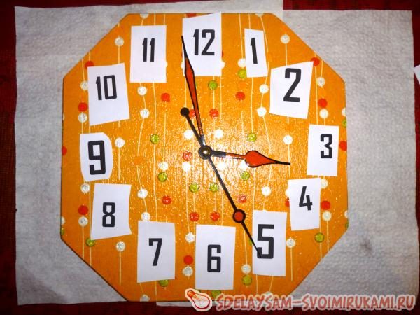 Нанеся неразбавленный клей ПВА на обратную сторону каждой цифры приклеиваем их на свои места.