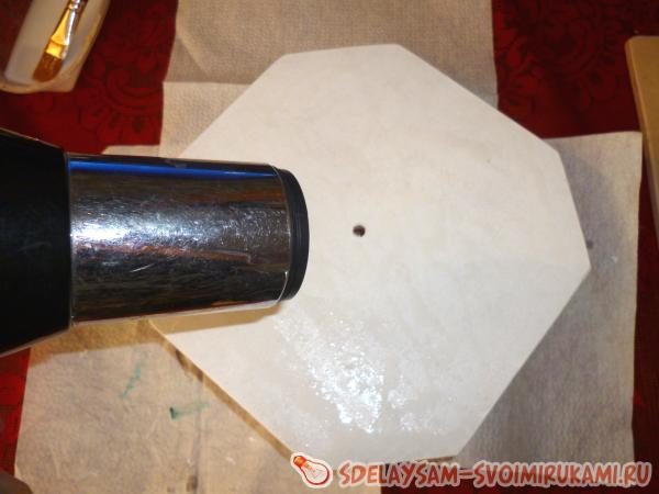 Покрываем заготовку полученной смесью и полностью высушиваем феном.