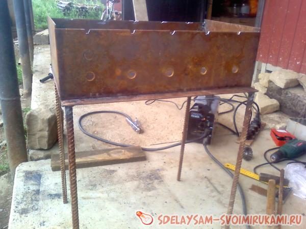 — листы железа толщиной 2-4 мм для изготовления корпуса и прутки или арматура (диаметром не менее 10 мм) для изготовления подставок-ножек;
