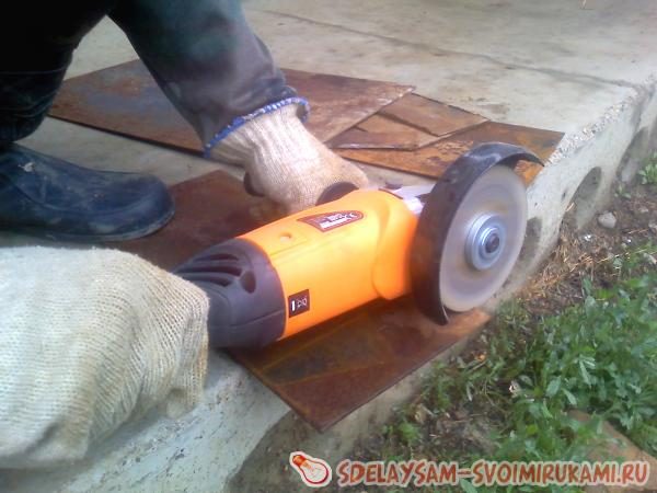 Итак, находим листы (обрезки) железа и придаем им болгаркой нужную форму.