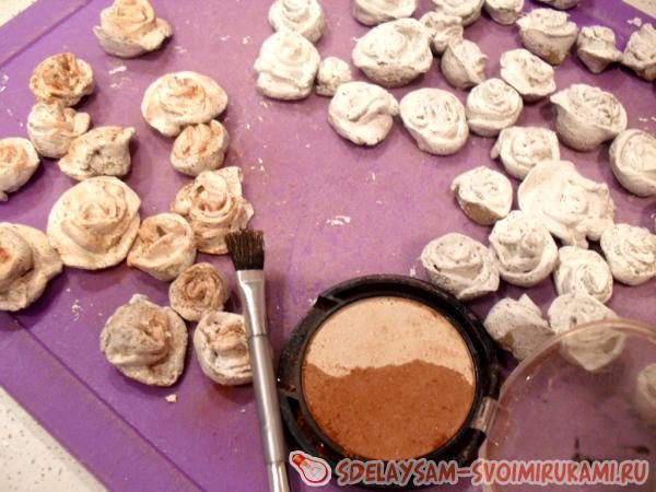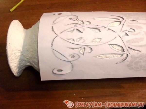 Лакируем всю поверхность вазы, тщательно нанося слои на розы и под ними.