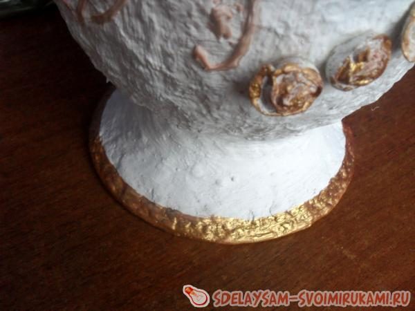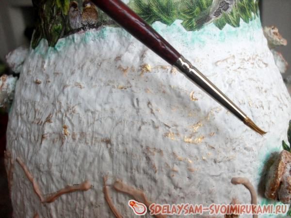 Оставшиеся белые просветы вазы матируем позолотой, растирая нечеткие мазки.