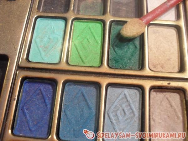 Тенями для век слегка тонируем по контуру задекупаженные места вазы.
