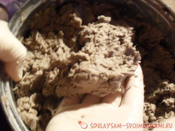 Крупные кусочки надрываем. Заливаем всю массу клеем ПВА.