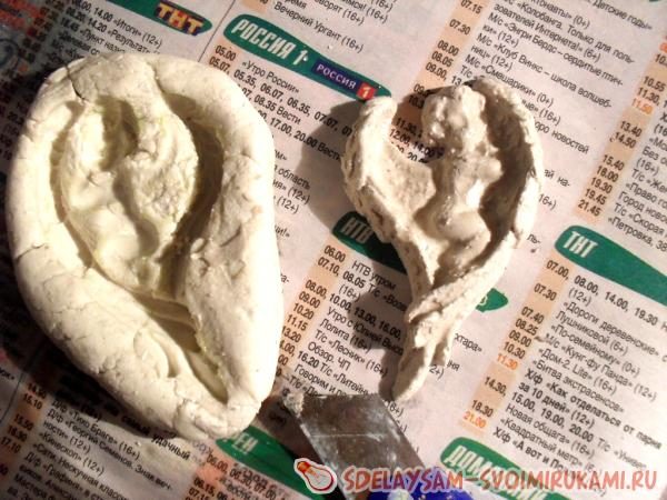 Оставляем раствор затвердеть (проверить готовность можно нажатием ногтя на фигурку – след не должен оставаться на поверхности). Поддеваем фигурку ножом и вынимаем из формы.