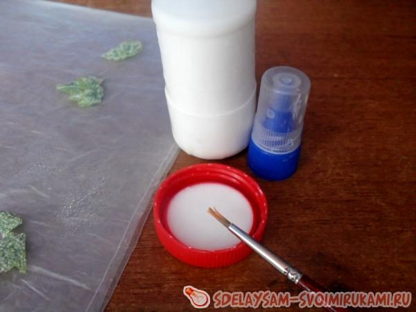Поверх рисунка тщательно наносим ПВА, стараясь промочить вырезку и разгладить ее края.