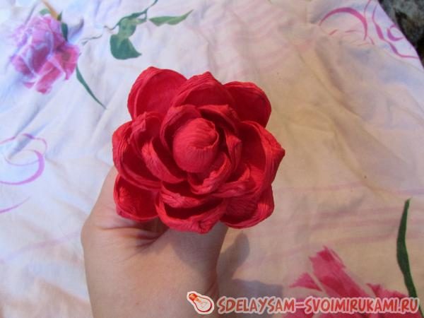 Этот цветок изготовлен из гофрированной бумаги. Его очень легко и быстро сделать. Он станет отличным дополнением в интерьере вашего дома или будет прекрасным подарком для друзей и близких.