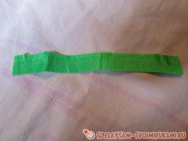 Для стебля возьмем зеленую полоску размером в 1х10 см. Растягиваем ее до предела.