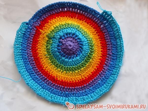 Теперь необходимо изготовить основную часть сумочки, состоит она из 2 кругов, недовязанных до конца.
