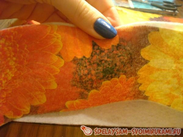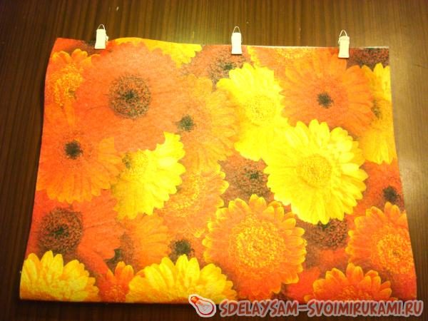 Сверху можно не подгибать, а просто обрезать. Материал всё равно не требует обметывания, потому что не сыпется.