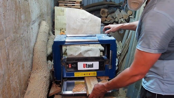Обрабатываем на фуговальном станке две перпендикулярные стороны каждой четверти и распиливаем на заготовки нужной толщины на циркулярке.
