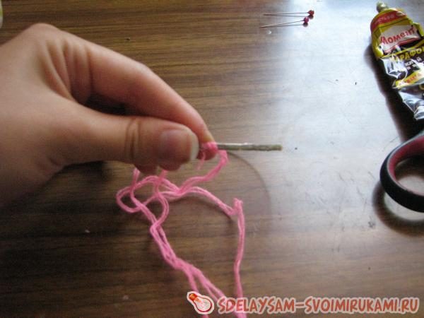И, наконец, ещё один вид браслета! Для него берём тонкую основу или проволоку и также с помощью клея обворачиваем одновременно 2-3 акриловые нити по всему каркасу. В отличие от ткани и лент, нитки можно заворачивать в несколько слоёв в тех местах, где видны выступы клея.