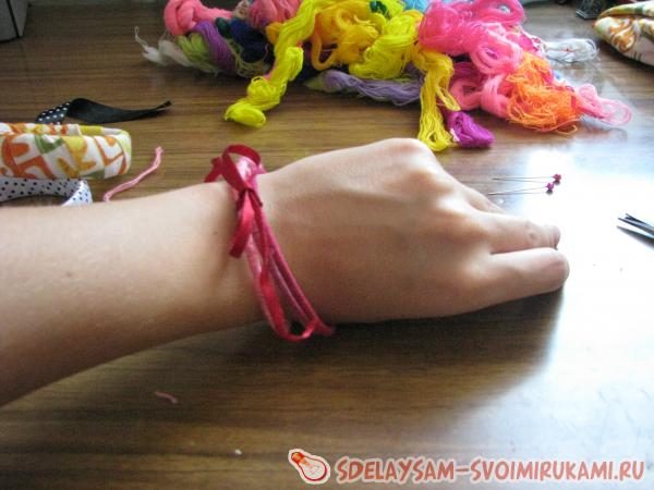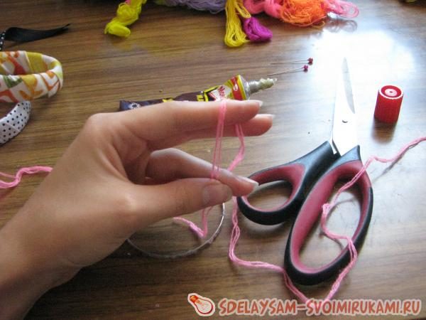 Наши главные инструменты – это ножницы, супер-клей, каркасы (это могут быть дешевые пластмассовые или металлические браслеты или же просто скрученная проволока по размеру вашей руки), акриловые нитки, атласные ленты, кусочки ткани.