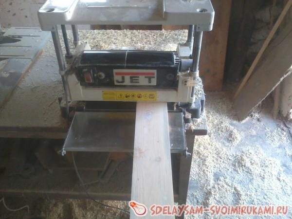 Далее на рейсмусовом станке подгоняем толщину досок до 20 мм, хотя при желании данный размер можно как увеличивать, так и уменьшать.