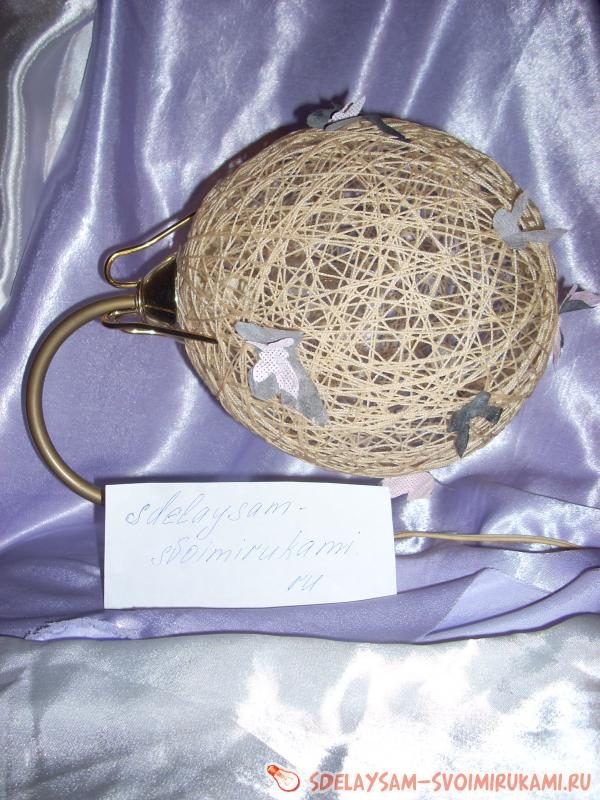 12. Берем основу светильника, прикрепляем ниточный каркас и можем любоваться созданной нами красотой.