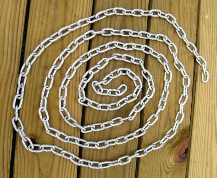 Теперь отмеряем основную цепь, тут все зависть от высоты до ветки вашего дерева. Отрезаем необходимую длину.