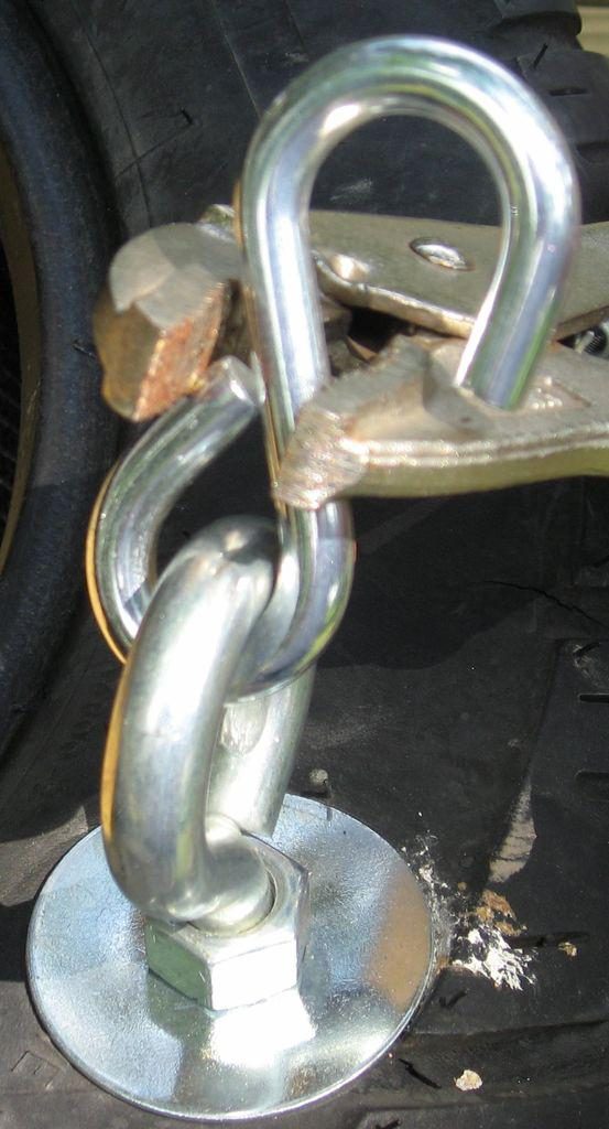 Деталь слева называется вертлюг, это шарнирное соединение и нужно оно для того чтобы цепь не перекручивалась.