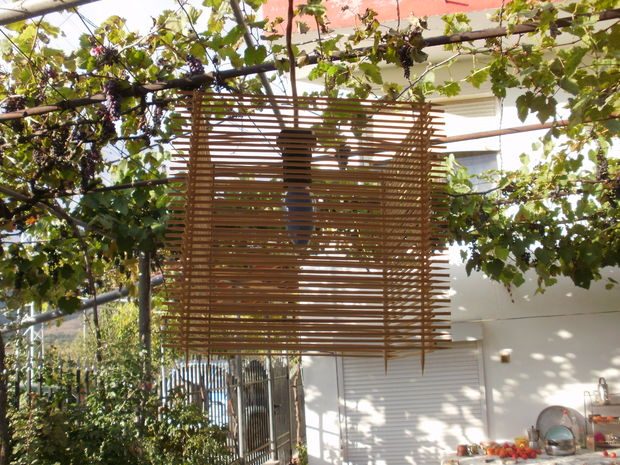 Конечно все можно оставить и так. А лучше, для лучшей сохранности покрыть светильник прозрачным лаком по дереву, тогда его хватит не на один сезон и деревянные палочки не потеряют свой цвет и не почернеют.
