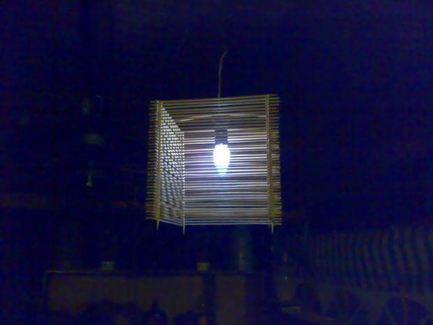Все что вам понадобиться это бамбуковые (деревянные) шпажки, которые можно купить в кулинарных магазинах. И клей по дереву, типа ПВА. Ну лампочку с проводом я в расчет не беру.