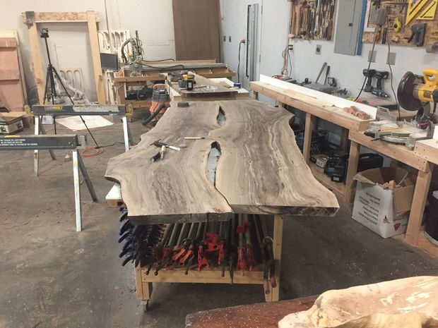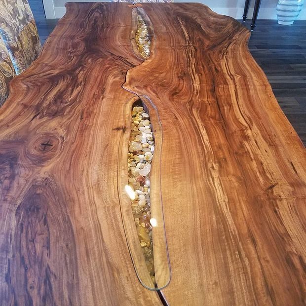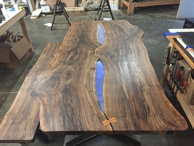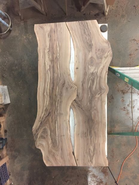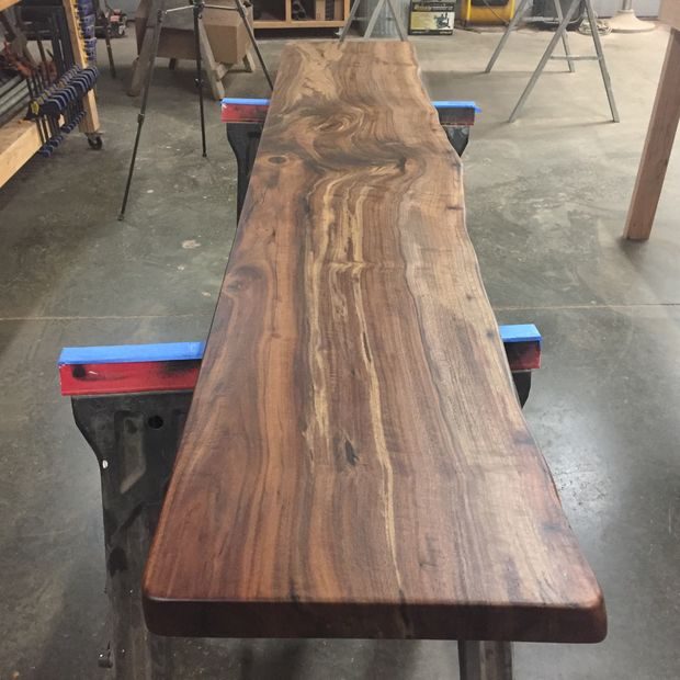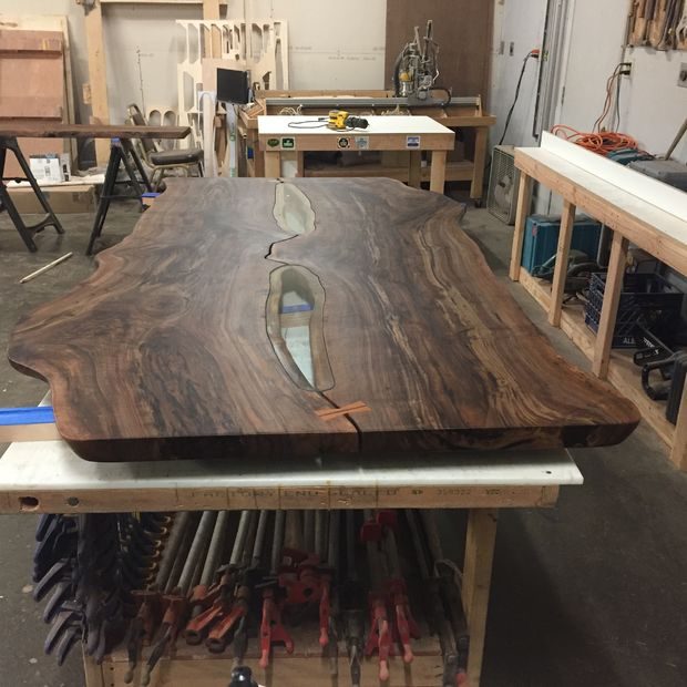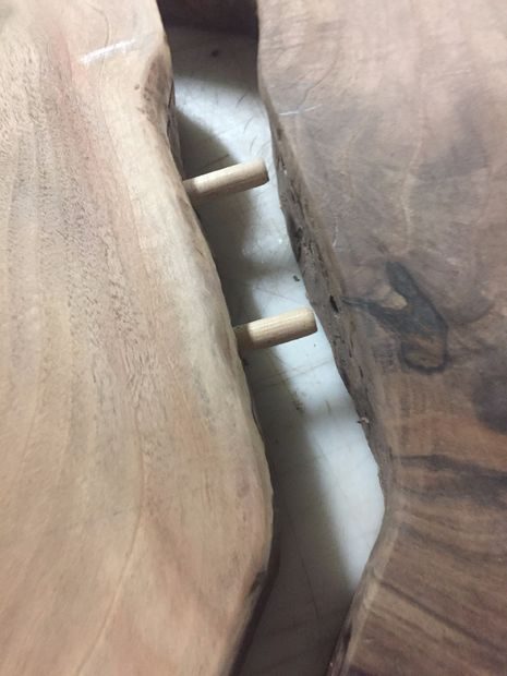 — Столешница с не обрезными краями с двух сторон, состоящая из двух отдельных ореховых досок.