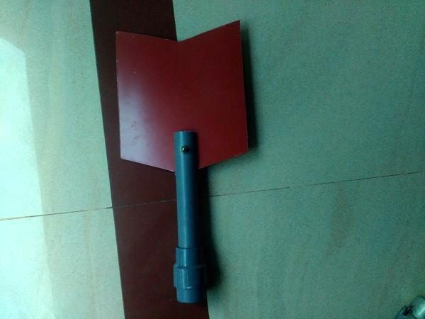 Для его изготовления нужно вырезать пластину из оцинкованной стали, сделать прорезь в пластиковой трубе, вставить в нее пластину и закрепить все болтом.