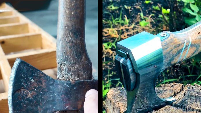 Головки старых топоров обычно отличаются массивностью, а их формы не отвечают современным требованиям эргономики и дизайна. Поэтому необходимо убрать лишний металл, изменить формы и сделать топорище из прочной древесины с красивой текстурой.