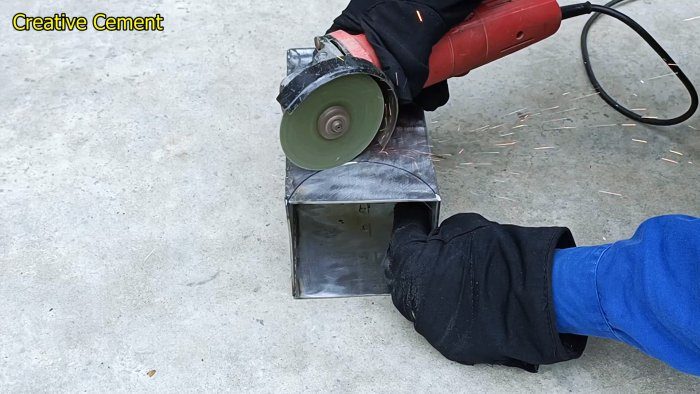 Теперь из листовой стали свариваем профильную трубу сечением 125х125 мм. С торца обрезаем ее под стыковку под прямым углом с круглой трубой.