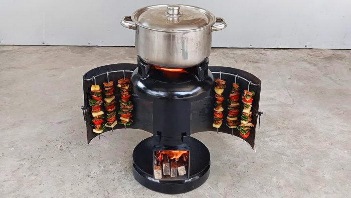 Жители частных домов и дачники частенько готовят летом на уличной дровяной печи, которая позволяет утилизировать ветки от подрезки сада. На ней удобно варить варенье и прочие зимние заготовки. Если у вас еще нет подобной печи, тогда сделайте ее из газового баллона.