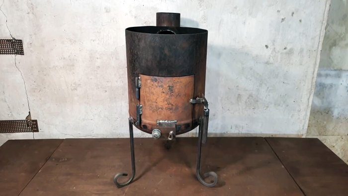Самый удобный и выгодный тип такой печки имеет дверцу, регулируемое поддувало и дымовую трубу.