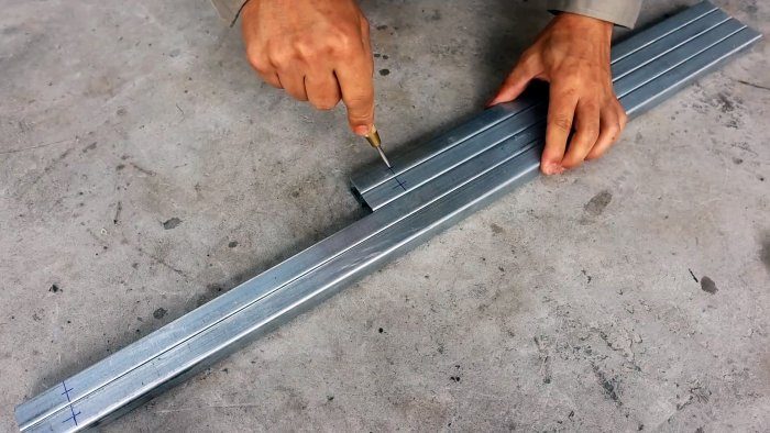 Отрезаем от профильной квадратной трубы по 2 заготовки длиной 80 см и 50 см.