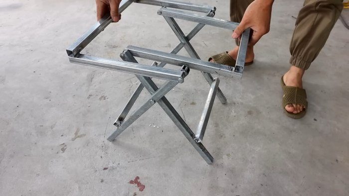 Процесс изготовления складного стула из профильной металлической трубы и дерева