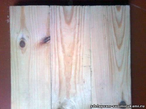 Первое, что вы должны сделать – это приготовить заготовки для вашего будущего стула. В нашем случае, сначала для ножек. Отрезаем 6 досок по 43 см каждую. Кладем их куда-нибудь рядом, чтобы не потерять из вида. Для крышки нам понадобится 4 доски по 32 см. Еще нам потребуется 2 доски по 23 см – это для лучшего скрепления стула. Подведем итог: у вас должно было получиться 6*43см, 4*32см и 2*23 см. Все правильно? Можно идти дальше. Следующий шаг очень важен, так как именно от него зависит: насколько ваш стул будет прочным. Мы будем склеивать наши детали. Лучше всего это делать на столе. Начнем с ножек. Как вы заметили, у нашей половой доски есть паз и гребень. Берем одну доску пазом на себя, промазываем гребень столярным клеем, берем вторую, но только намазываем паз и вставляем друг в друга. С третьей повторяем то же самое. Молотком выравниваем доски по длине, чтобы не получилось так, что одна из них выступает.