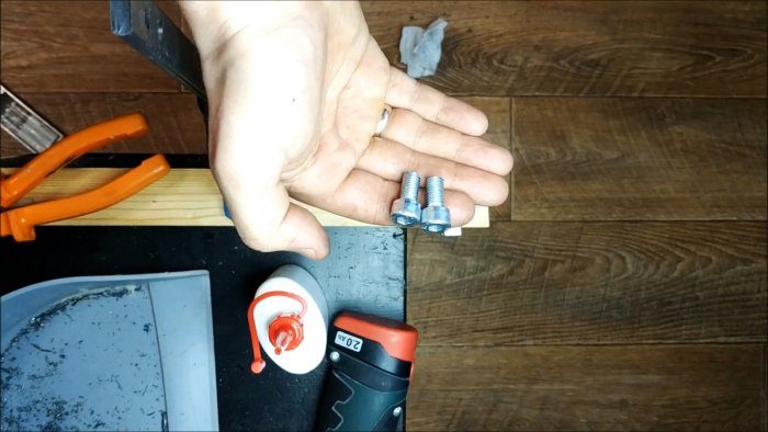 Теперь берем два болта М8 с цилиндрической головкой, и просверливаем их насквозь. Важно не повредить резьбу.