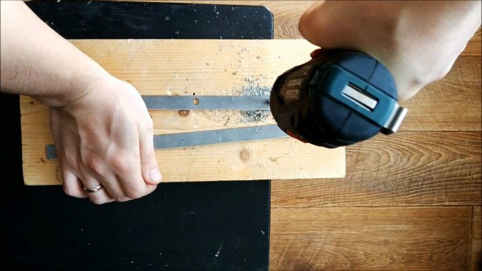 С целой стороны заготовки, напротив подготовленных окон, просверливаются два отверстия диаметром по 8 мм.
