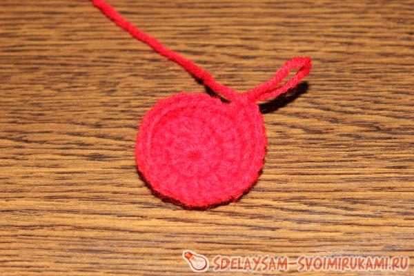 Вязание берета начинается с провязывания цепочки из 6 воздушных петель, которые необходимо замкнуть в кольцо. Это будет первый ряд.
