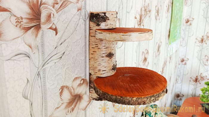 Ну, или же упаковываем в красивую подарочную коробку, если эта вещь делалась в подарок. В поделке всё должно быть максимально просто и ненавязчиво. Натурально. Я даже не стал зашлифовывать спилы до абсолютно гладкой поверхности. Оставил небольшие следы от пиления. Суть поделки – индивидуальность. Импровизация. Каждый может довести до нужного ему результата. Зашлифовать до блеска спиленную поверхность, оставить или снять кору, добавить ещё пару-тройку спилов, и т.д и т.п.
