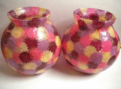 Лепестки из бумаги, салфетки, лоскутки ткани.