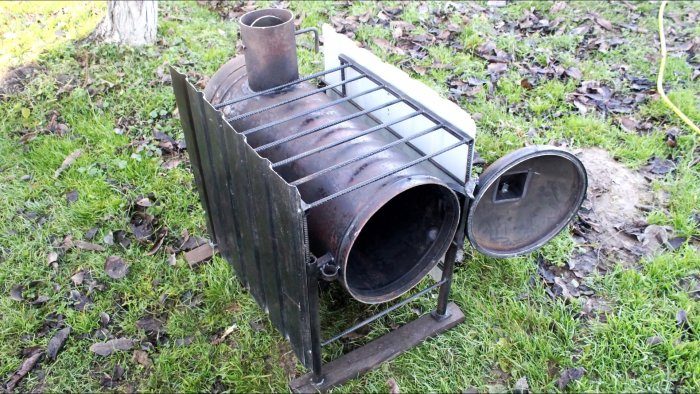 К баллону привариваются ножки удобной высоты. Их нужно соединить между собой перемычками для жесткости.