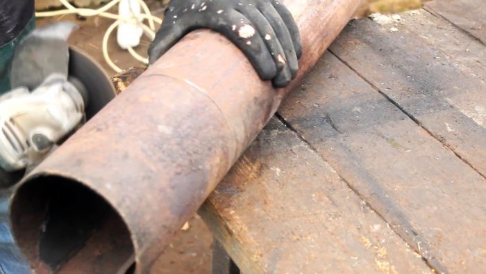 Внизу баллона прорезается отверстие под трубу 100 мм.