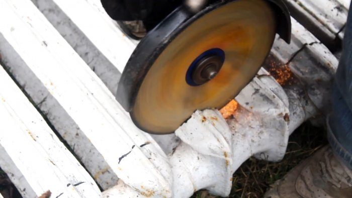 Для изготовления печи необходимо заготовить ребра чугунных радиаторов. Они срезаются болгаркой. Важно чтобы срезы были ровными, и ребра имели одинаковую длину. После этого они выжигаются в костре, чтобы удалить многолетние слои краски. Обожженные ребра зачищаются.