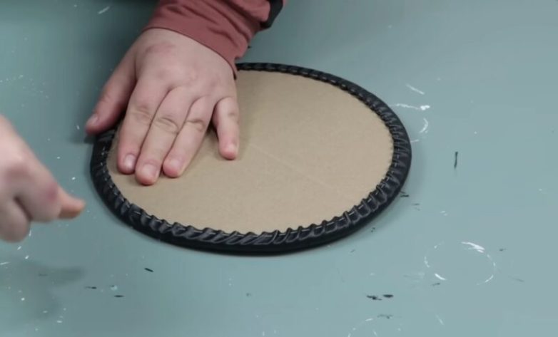 Замкните заготовку в кольцо и зафиксируйте ее на картонном основании.