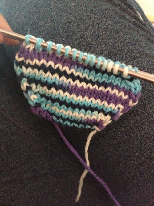Такой плед называют hexipuffs — шестигранные пуфы, «пчелиное одеяло», «одеяло пчеловода», потому что напоминает пчелиные соты. В источнике пишут, что надо купить «шаблон». Но по фотографиям нетрудно понять, что шестиугольник вяжется на двух спицах.